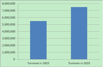 Fatturato nel 2019: 500.000 USD nel 2020: 7.500.000 USD tasso di aumento: 36,36%